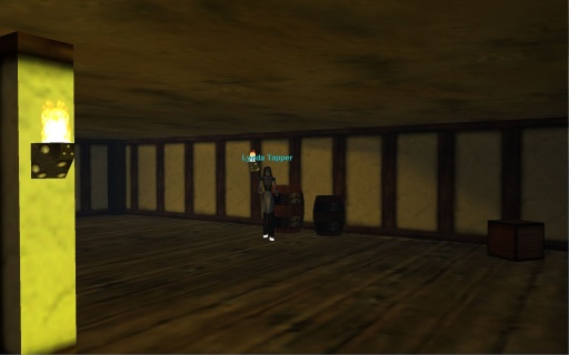 The patrons here are also much easier going than you might expect at first glance. Palatos Kynarn for example, a regular here, has only one purpose which is to drink Capt. Orlin's Spiced Ale. Zenita D`Rin certainly looks like she could pack a punch, but she's only level 8 and just wants to play a card game in exchange for a little kiss. A little Innoruuk's Kiss of Death that is, of course. Canlan Talespinner also hangs around here, a warrior who wishes he were a bard. And then of course there's Guard Ranlan who has conveniently included a stop up at the bar counter here on his patrol route.