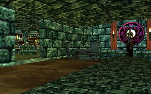 On the outside, Crow’s Tavern looks like a decent enough place. Even the bar room has a very large, clean, socialable ambiance to it. The upper deck has plenty of seating, and it seems to be in a great part of town. Run by a man named Crow, the specialty at Crow’s Tavern is of course Crow's Special Brew. It’s a highly desirable drink, requested by many across the land. There are two version's of this drink, both of which are quite interesting. Crows Special Brew is stocked for sale by Crow him self, however he only has a limited supply and does run out (re-stocked through his death and re-birth). The second version, Crow's Special Brew, is only acquired by completing The Tattered Pouch quest by helping out a homeless drunkard.