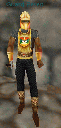 Guard Beren says 'What do you want? Are you friends with that lousy [dwarf]?! You had better not be unless you want to spend the rest of the week bleeding!'