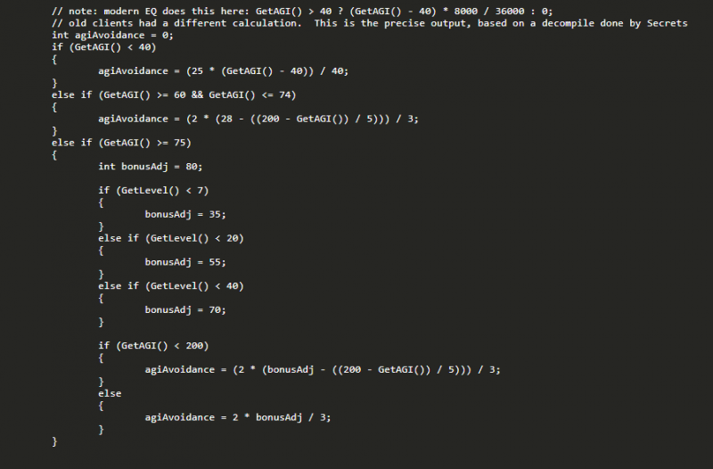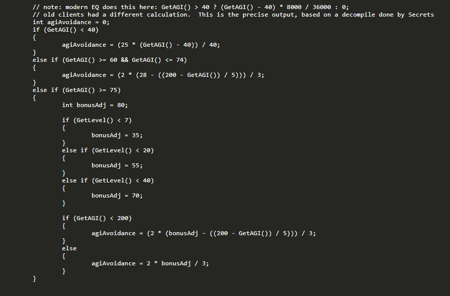 | current | 09:27, 29 January 2019 | 895 × 589 (23 KB) | Caiu (Talk | contribs) | This is the formula used in the avoidance AC calculation for agility bonus in the classic era. Note that modern EQ uses a different formula. |