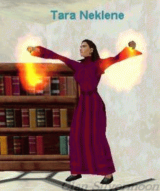 Tara Neklene says, 'Wonderful!! You have survived the might of an oracle. With this we can now continue with our experiments. Now you may continue your teaching and study the power to summon those of earth, air, water and fire.'