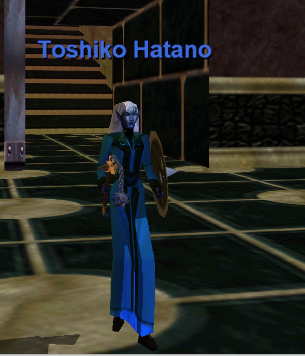 Toshiko is a Japanese name given to girls meaning "quick", "agile", and "clever". Toshiko is very polite and kind despite worshipping the God of Hate. She loves giving 97% rezz to anyone who asks kindly. She is a casual cleric who loves raiding and exploring Norrath as she sees fit. Mana on the magelo is inaccurate for some reason (the mana is around 4060)