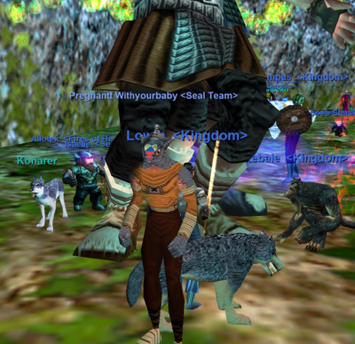 Camp monk Pregnantt Withyourbaby shows off Golden Star armor and AoW pants while others do work at Statue raceline.
