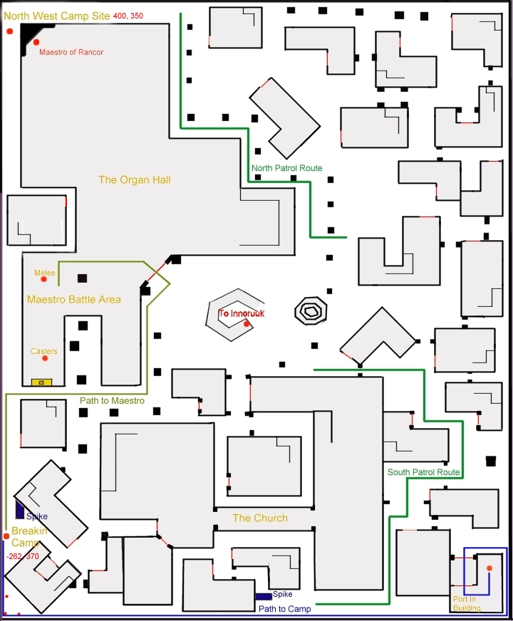 On Live, the safest place to pull to was the southwest corner. On Project 1999 (Blue), there is an imp trap in the southwest corner and it is very not safe. Groups seem to have no problem pulling to church, zone in, or organ hall. The later two are usually the preferred camps.