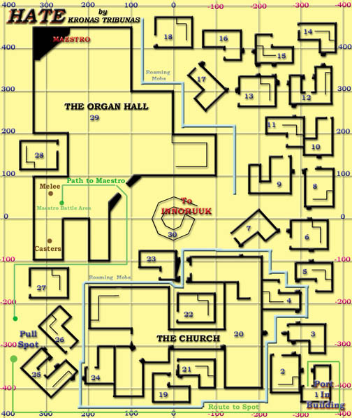 The Plane of Hate can only be reached via the wizard spell Alter Plane: Hate, and requires the reagent Fuligan Soulstone of Innoruuk. The stone is sold by Dvis Zexus, the coffin vendor in the dark elf cleric guild, Neriak 3rd Gate. Minimum price for it is 260pp. Any character below level 46 will not be able to enter the Plane of Hate. Upon entering, players are often immediately attacked and surrounded by a number of enemies. Many monsters will see through invisibility and Invisibility versus Undead. The entire zone is extremely dangerous and intended for raids of multiple groups.