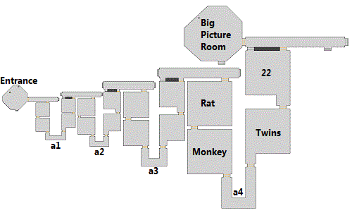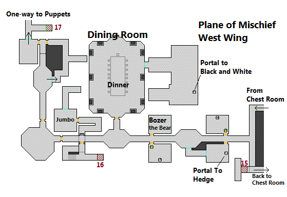 The abbreviated map on this page does not show the whole zone. Please visit Plane of Mischief maps or scroll down for more maps for each section. Red numbers on the following maps denote pit traps which drop the player into the Rat Maze.