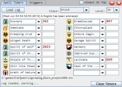 EQ LogTools is a parsing tool that reads the last line of a Project 1999 log file. It looks for specific triggers for spells and disciplines and starts countdown timers when a spell has been successfully cast/landed on a target.