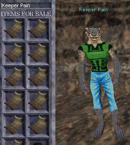 - Keeper Pain raises his gaze from his tomes to greet you. 'Ahh!! Welcome, seeker of knowledge! Come to fill your brain, have you? Look closer, adventurer. I have scribed some very powerful spells.'