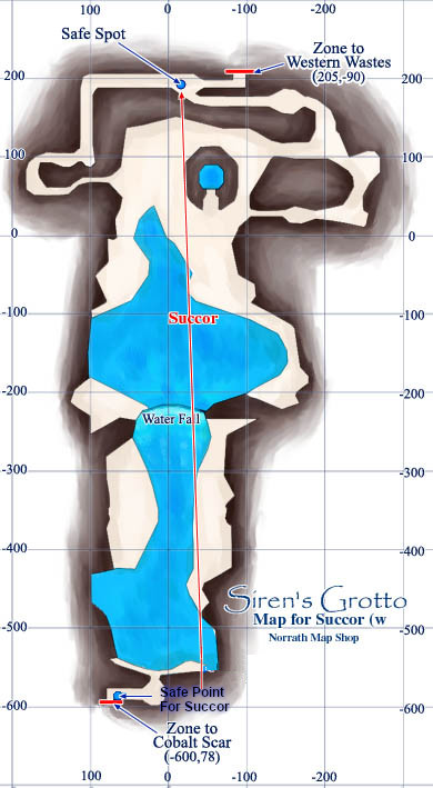 This zone does not have a traditional location key, but a player has annotated the Siren's Grotto maps with most of the spawn points and paths of mobile mobs. (NOTE: Currently missing some of the underwater tunnels).