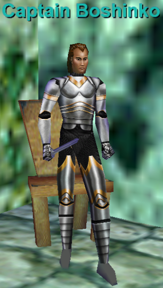 - Captain Boshinko says, 'A prisoner named Bronin Higginsbot, a halfling, recently escaped. He was a small time thief and I would care less if it were not for the fact that in the process of obtaining the cell key. he disemboweled my finest guard. We found the bloodied shank still stuck in my guard's gutted corpse. Would you [like to know more]?'