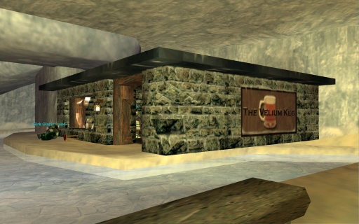 At the back of the room and down a few steps opens up to the brewery portion of the bar. Not only is there a second equally large service bar, but also an active brew kettle and three giant velium carved fermentation tanks! Grimthor Brewbeard, presumably the brewmaster here, idles silently behind the bar with his excellent surname, speaking only to those coming to him for rune-making advice. Brewing enthusiasts can turn to Celtir Gronback however, selling both a small selection of drinks and some basic brewing ingredients.