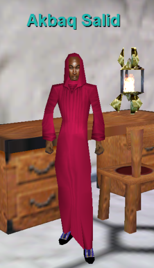 Akbaq Salid is in the Erudin Wizard guild. He requires indifferent faction in order to offer you the quest. If you can sneak, that is sufficient. (Can be handed in at Apprehensive faction - Zapdos-blue 12/30/22 Got cloak and leggings at apprehensive 11/3/23 Berlee-blue -- was a little bit of a nail biter as when you hail him at apprehensive he says something about not trusting you enough yet to give you the quest)